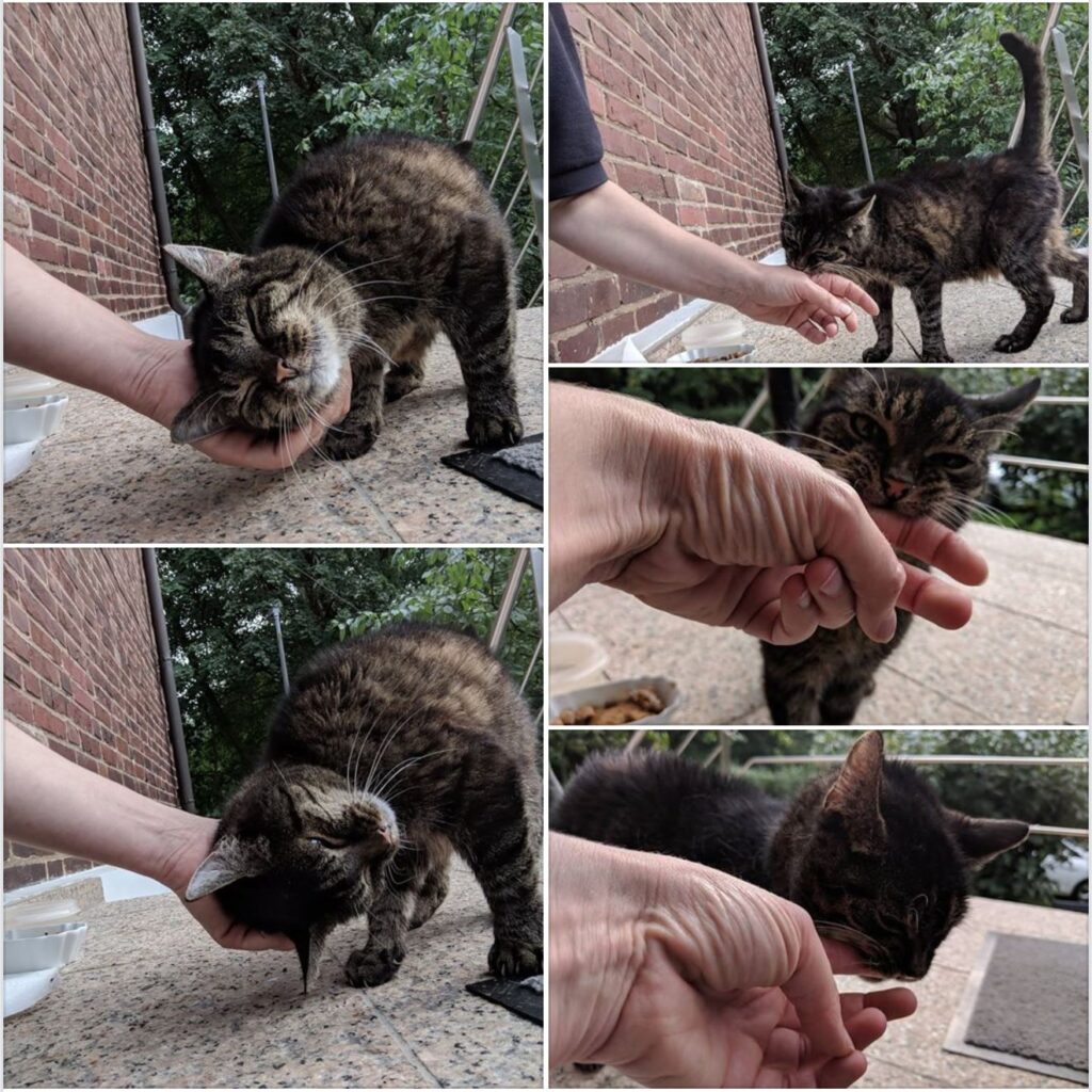 Heute musste Mimi einiges über sich ergehen lassen und hat sich sehr tapfer gehalten. Sie hat seit einiger Zeit komische Anwandlungen, die ihre Adoptivfamilie ganz schön auf Trapp halten, und deshalb war ein Tierarztbesuch zur Abklärung unausweichlich. Das überlegt man sich bei einer so alten Katze schon mindestens zweimal ganz genau, aber inzwischen war die Situation ohne Alternative.